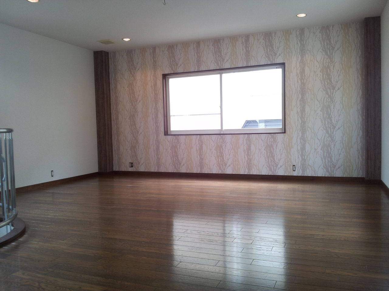 24帖以上あるLDKには、鉄骨の柱型をアクセントクロスで額縁風に仕上げました。