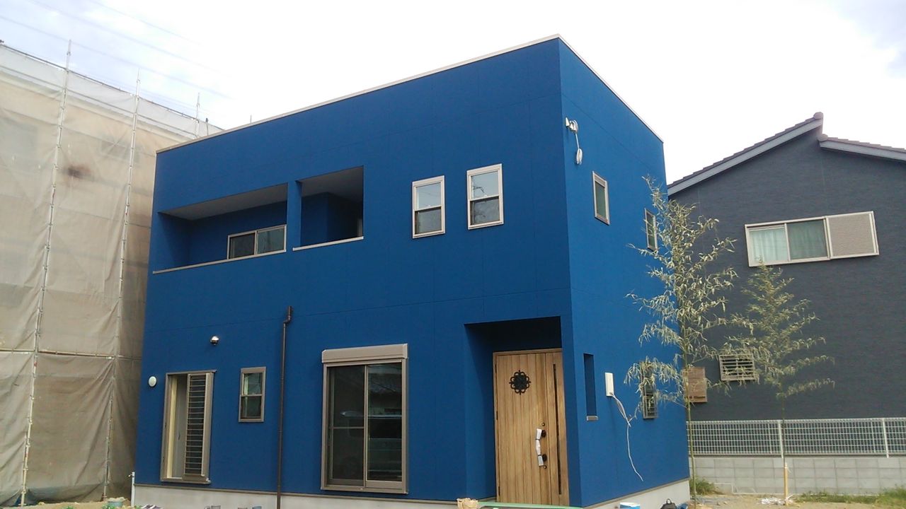 ・ブルーの外壁スクエアなK様邸 月末決済ですね。