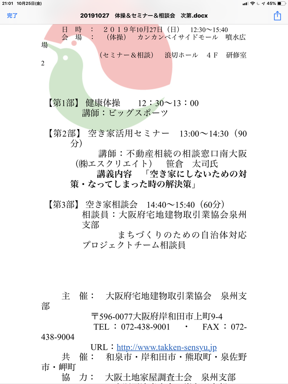 一般社団法人 大阪府不動産コンサルティング協会の空き家セミナーの