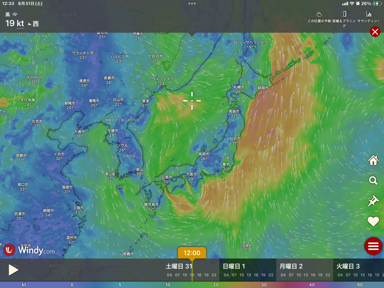 正午現在のところ曇空ではありますが