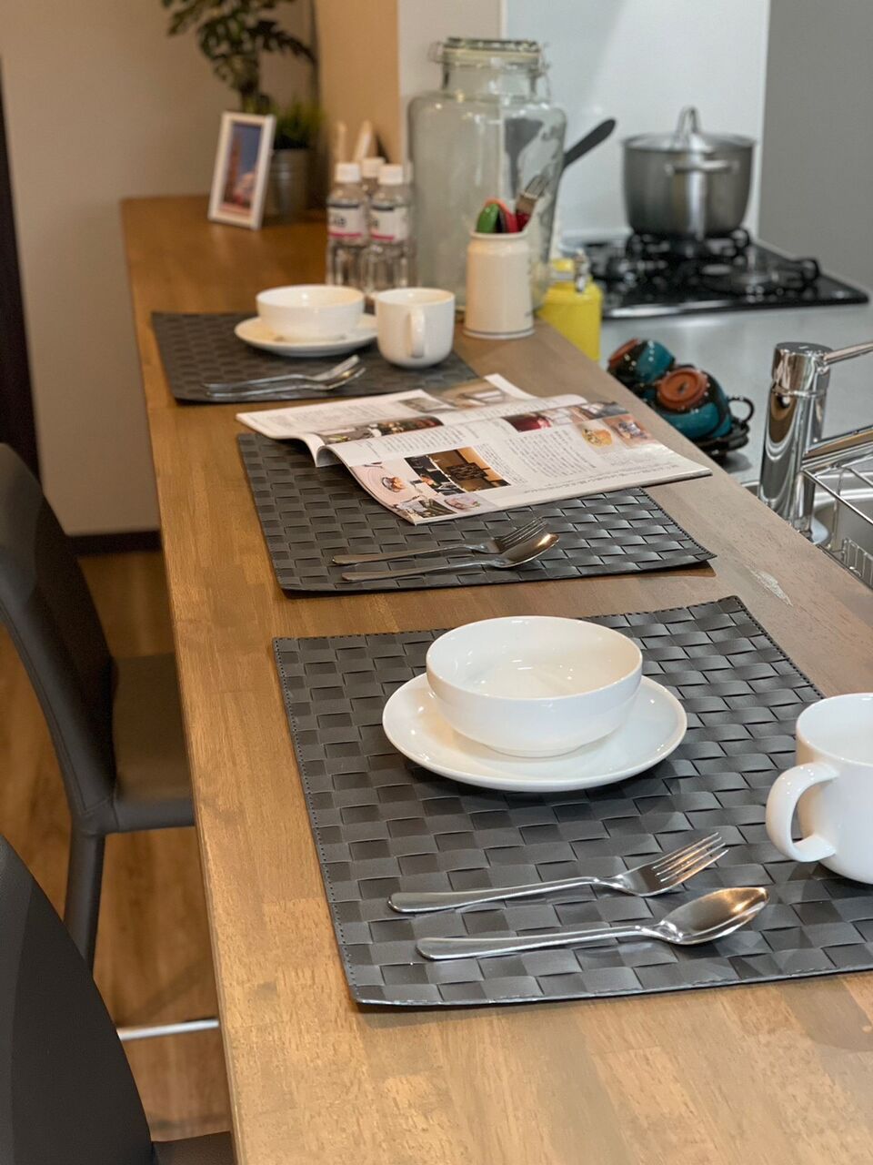 スモーキーなライトグレートーンのクロスに映えています。