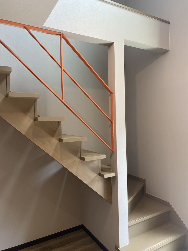 ストリップ階段に上部からの窓を配して