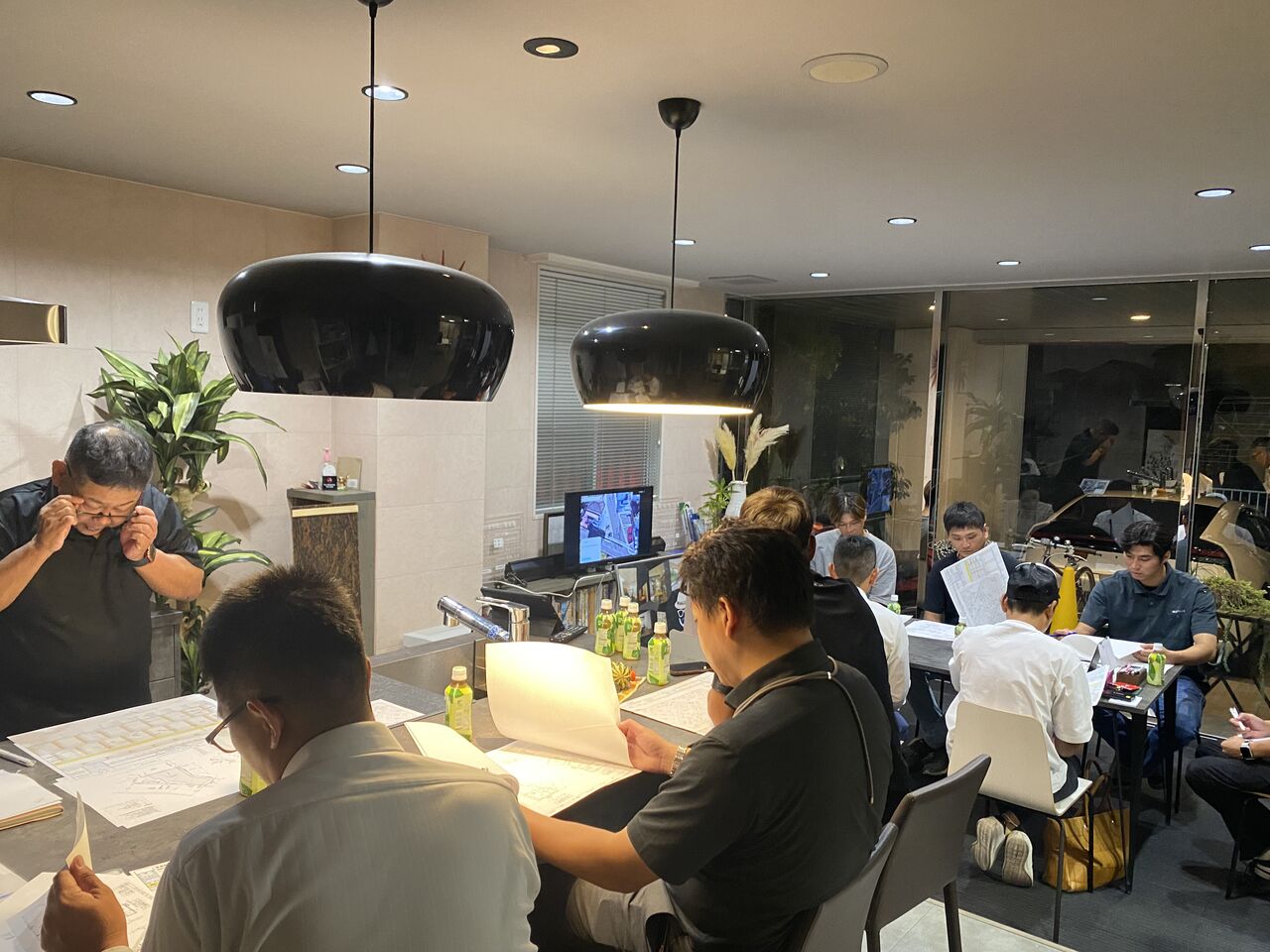 そして昨日、夕方からは、岸和田市で進める二階建て新築住宅の着工前打ち合わせを弊社ショールームで開催しました。(添付写真にあるように、多くの専門家が集まって真剣に打ち合わせをしている様子です。)