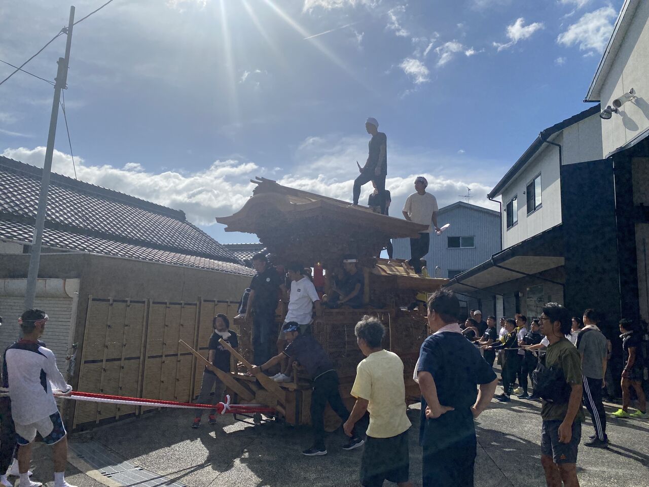 朝からだんじりの試験曳行前の
